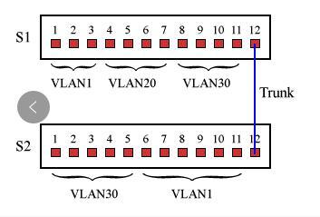 兩臺交換機S1和S2利用VLAN分割成幾個虛擬局域網,S1中VLAN1、VLAN30與S2中的VLAN1、VLAN30雖然是同一個VLAN,但卻不能直接通信。那么如何使VLAN1、VLAN30同VLAN之間可以通信呢,不同的VLAN之間不可以通信呢?