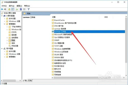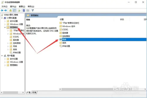 然后再在本地組策略編輯器中找到計算機配置---管理模板---網絡,如下圖所示