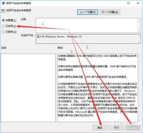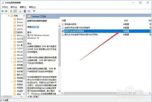 進入后我們可以看到設置中的第三個啟用不安全的來賓登錄狀態目前是未配置的,雙擊進入配置