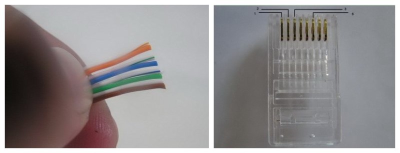 步驟二:在網線的保護套被剝掉后,我們可以看到包在里面的四對顏色各不相同的芯線。將這四對芯線分開,按照白橙、橙、白綠、藍、白藍、綠、白棕、棕的顏色一字排列。