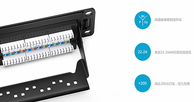 電話配線架主要是將一根主干電話線纜劃分開,將成對的電話線分支,然后與入戶線或者電話交換機連接。由于電話線導體材料皆以銅為主,因此110配線架或網絡配線架都可以管理電話線。