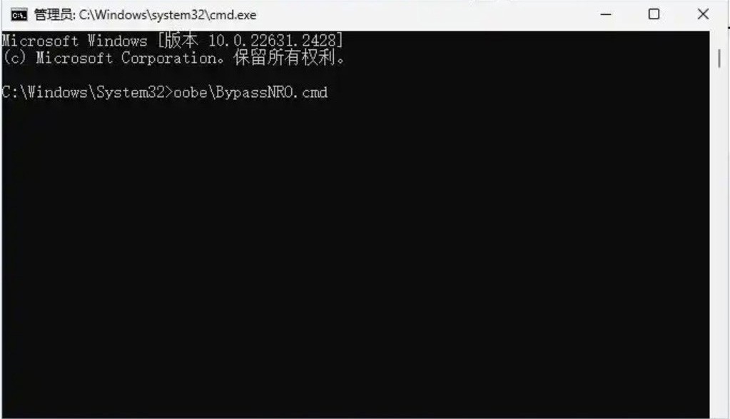 用鼠標單擊新窗口,輸入oobe\bypassnro.cmd,(注意這里的斜杠是反斜杠)然后回車,電腦就會重啟,再次設置到網絡的時候就會顯示出“我沒有Internet連接”的選項,就可以跳過登錄了。