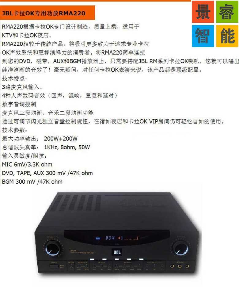 JBL卡拉OK專用功放RMA220